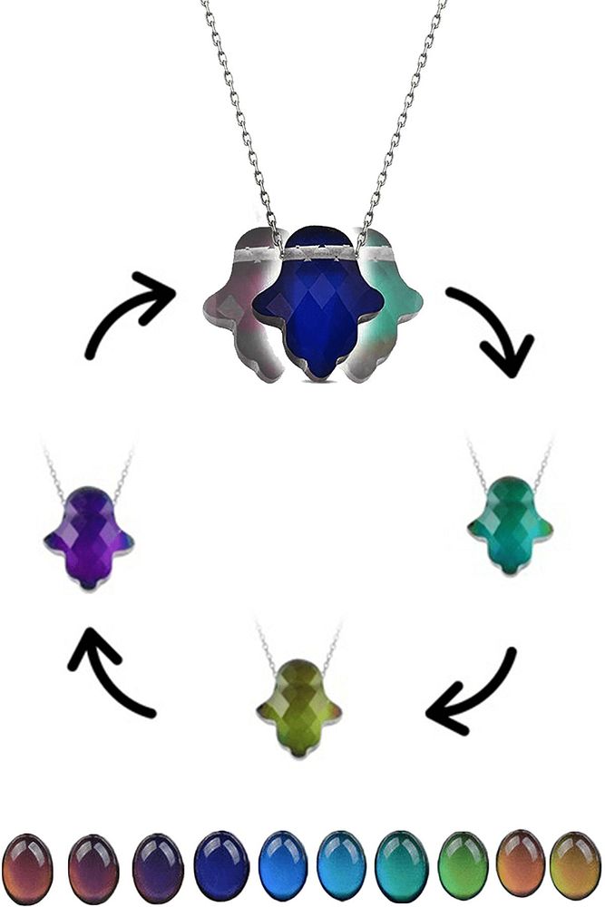 Vücut Isısına Göre 12 Renk Değiştiren Fatma Eli Gümüş His Taşı Kolye