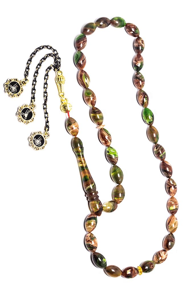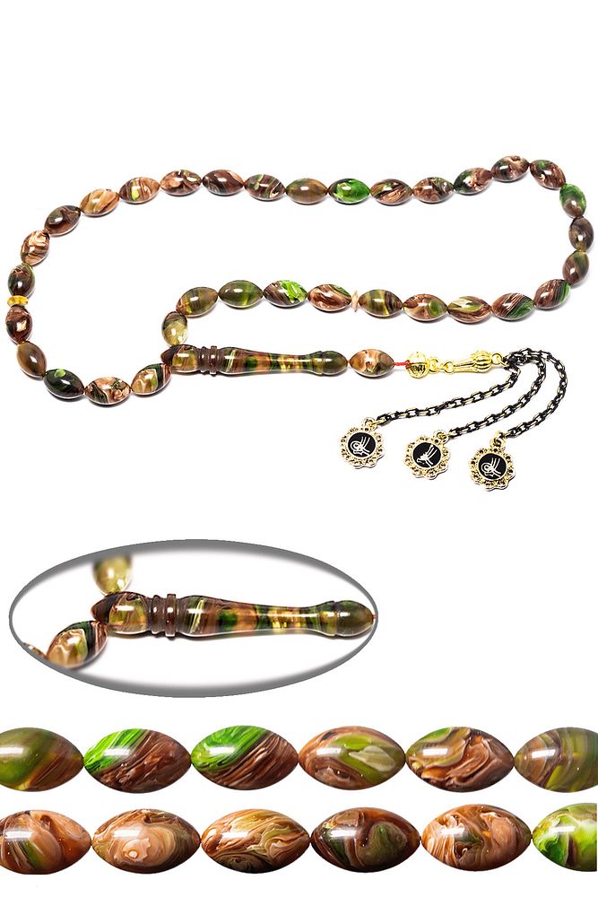 Yeşil Kahverengi Renkli Yoğun Hareli Sıkma Kehribar Tesbih