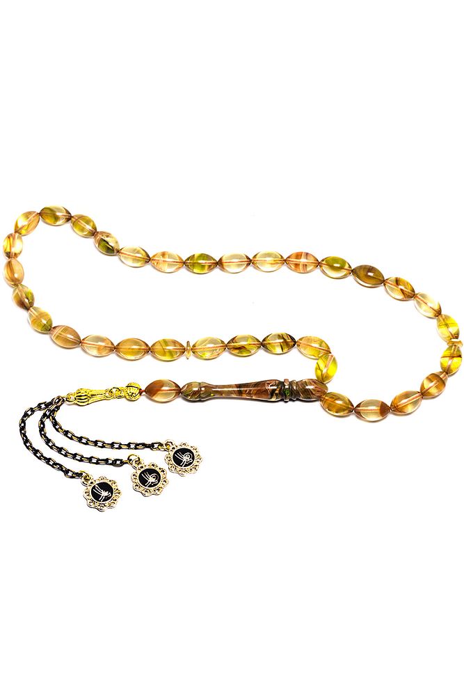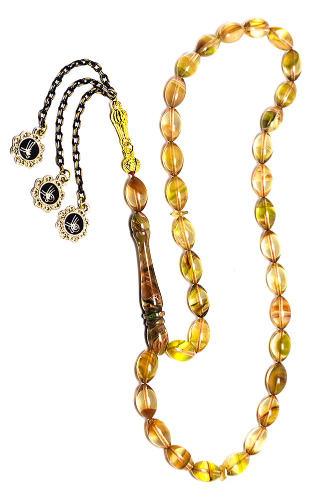 Yeşil Şeffaf Renkli Hareli Sıkma Kehribar Tesbih