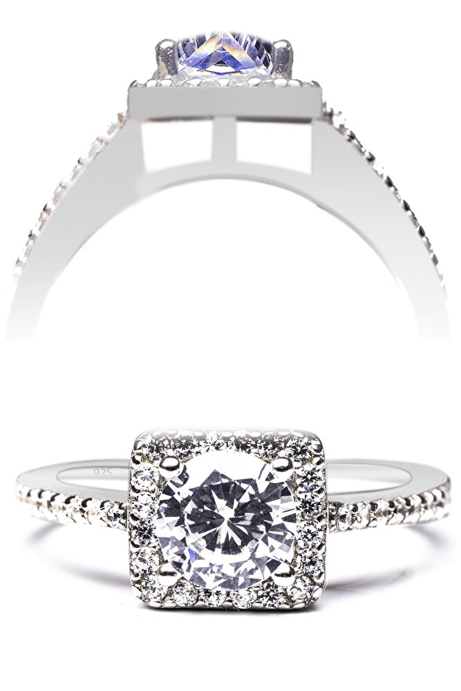 Yoğun Swarowski Taşlı Zirkon Işlemeli Tektaş Gümüş Yüzük