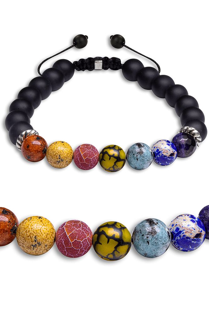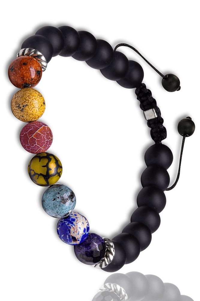 Farklı renklerdeki doğal taşların uyumu, bilekliğe enerjik ve dikkat çekici bir görünüm kazandırır. Günlük kullanımda hem stilinizi tamamlayan hem de fark yaratan bir aksesuar olarak öne çıkar. Özel tasarım dizilimi sayesinde bilekte güçlü ve dengeli bir duruş sergiler.